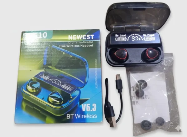 M10 TWS Wireless Bluetooth Headset with Digital Display Charging Case and Power Bank Feature
