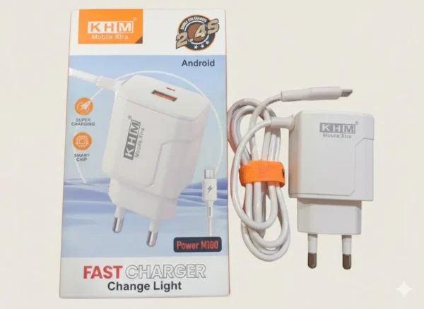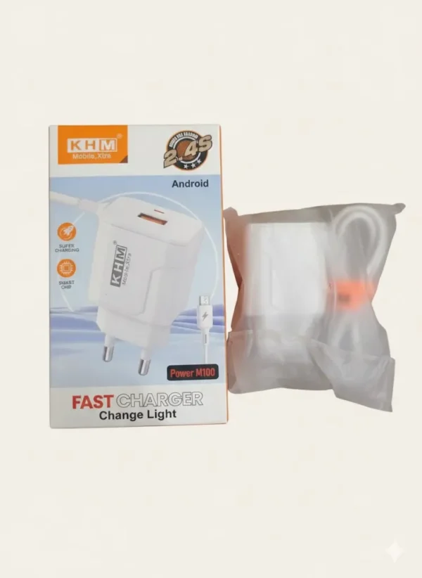 KHM Mobile Xtra Power M100 Fast Charger with Change Light Android Micro USB Cable